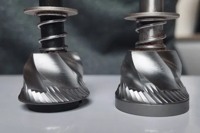 I originally thought maybe it was just the precise RPM of the motor giving it an edge, but after taking the grinders apart and looking more closely, it turns out the burr design itself is subtly different too.